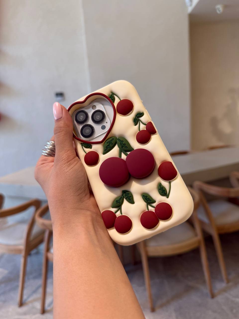 قاب موبایل آیفون دیور صورتی برگ انجیری + بندست