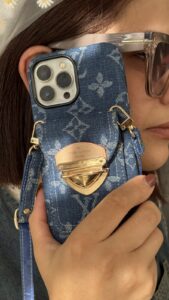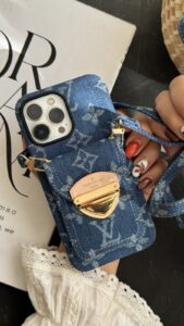 قاب موبایل آیفون لویی ویتون جین استایل جاکارتی دار + بندست یک انتخاب بینظیر برای کسانی است که به دنبال ظاهری خاص و لوکس برای گوشی آیفون خود هستند. طراحی این قاب الهامگرفته از برند مطرح Louis Vuitton است و با پارچه جین آبیرنگ و دوخت ظریف، ظاهری مدرن و شیک به گوشی شما میبخشد.
