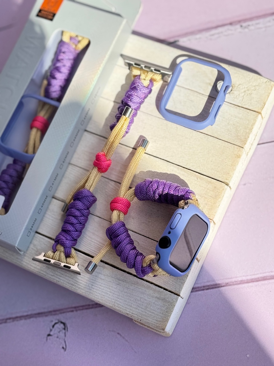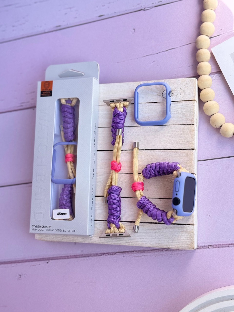 بند اپل واچ بافت بنفش کنفی با گارد سیلیکونی (کدw5060)